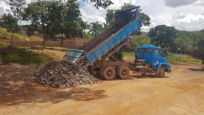 O material doado por uma empresa é usado para fechar o buraco que, depois da compactação, receberá uma cobertura com RCC (resíduo da construção civil), do Serviço de Limpeza Urbana (SLU).