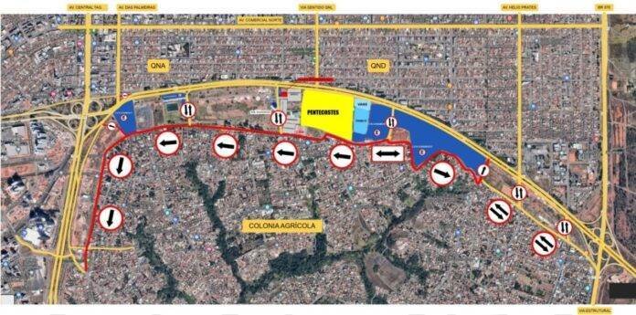 Para os motoristas que transitam pela Avenida Samdu Sul, em direção à Taguatinga Norte, o cruzamento em frente à Feira dos Importados estará interditado durante a dispersão. Assim, os condutores deverão seguir no sentido Ceilândia pela pista reversa da Avenida Elmo Serejo, acessando a Via LJ -1, no setor QNL/QNJ, e a partir dessa via, poderão acessar Taguatinga Norte pela Via de ligação Senai/Samdu Norte ou pela Avenida Hélio Prates.