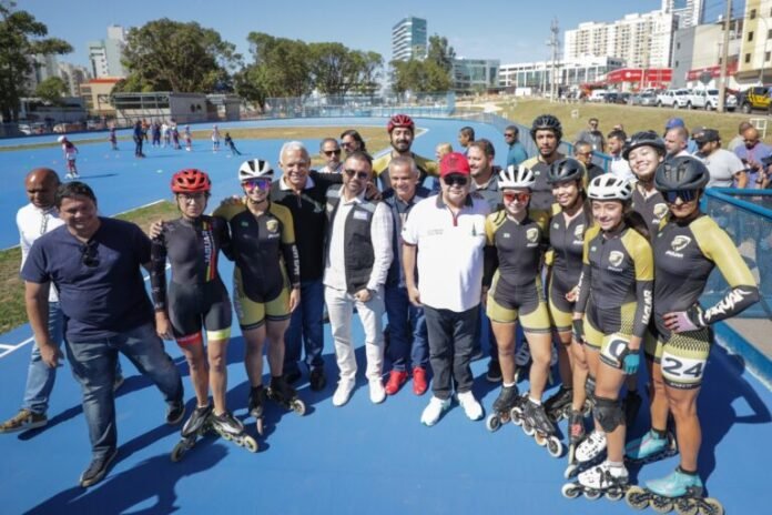 “Entregas muito importantes nesta manhã aqui em Águas Claras. Uma pista de patinação de altíssimo nível”, afirmou o governador. “Foi feita pela Terracap e entregue à comunidade de Águas Claras”, acrescentou Ibaneis Rocha, que acompanhou uma apresentação do grupo de patinação de velocidade Jaguar durante a solenidade de inauguração.