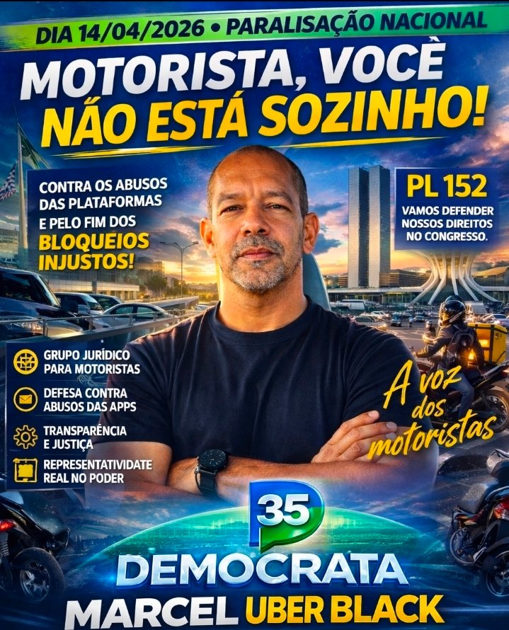 No centro desse cenário, um novo nome começa a ganhar destaque e ocupar espaço político: Marcel Uber Black, que surge como uma das vozes mais ativas na defesa dos motoristas no Distrito Federal.