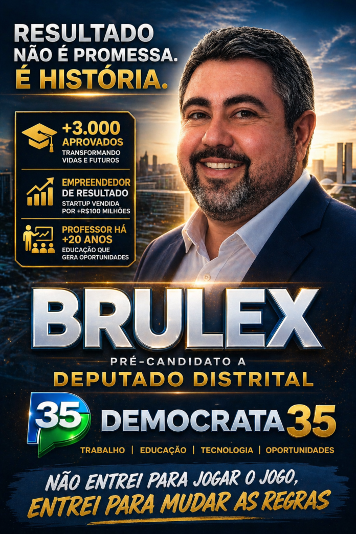 O cenário político do Distrito Federal começa a receber novos nomes com propostas voltadas à eficiência e inovação. Entre eles está Alex Delgado Gonçalves Casañas, conhecido como BRULEX, que se coloca como pré-candidato a deputado distrital pelo Democrata 35, defendendo uma atuação baseada em desempenho, tecnologia e transformação educacional.
