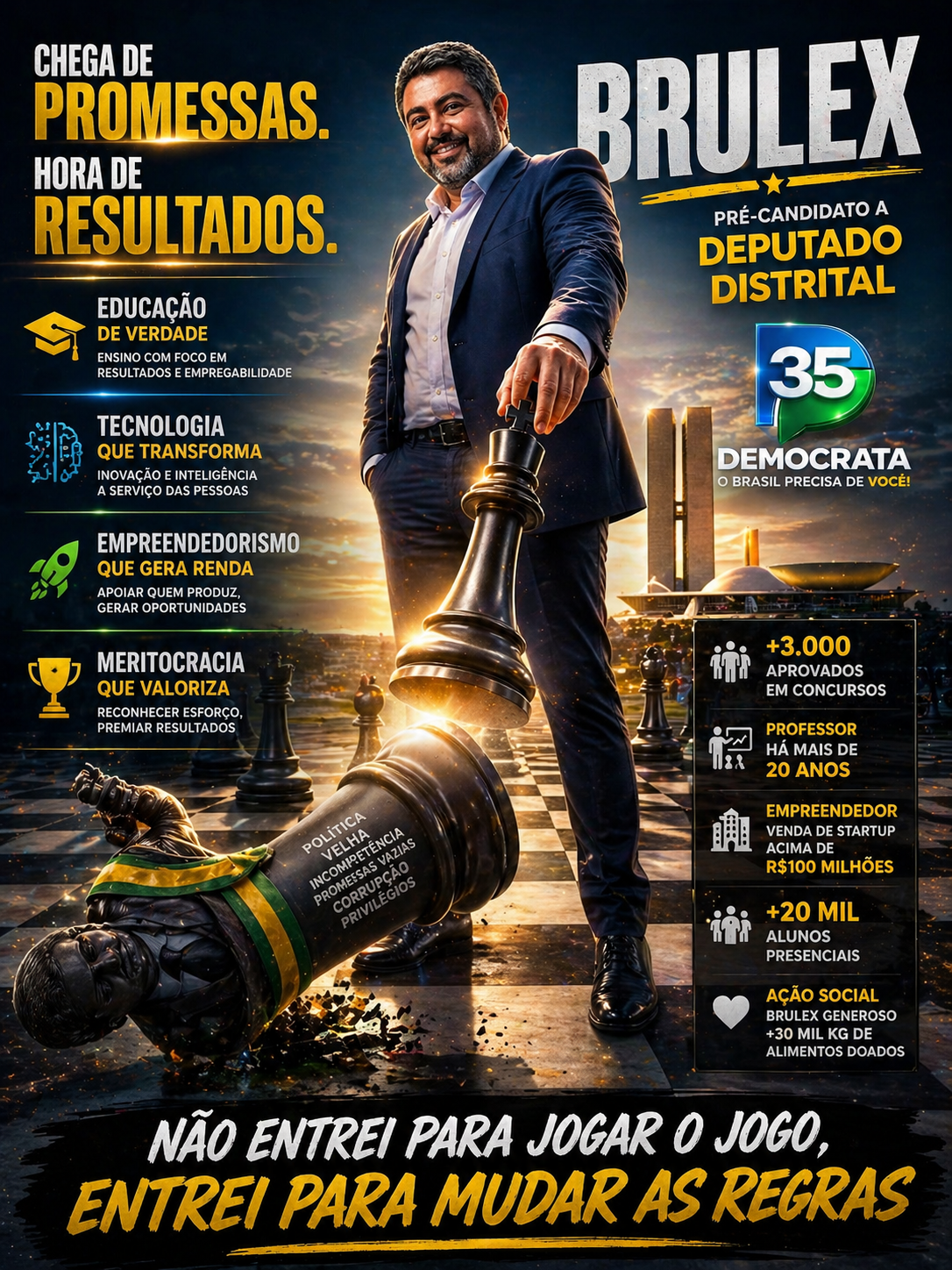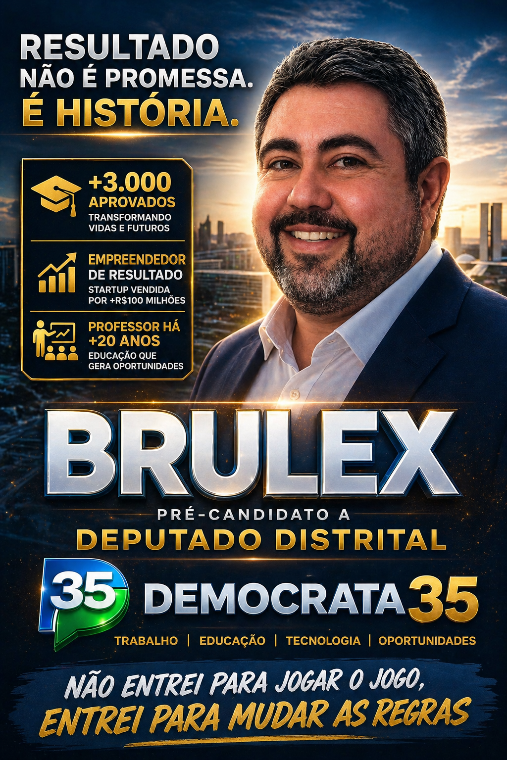 Com discurso baseado em eficiência, inovação e resultados, BRULEX entra no cenário político do Distrito Federal representando um perfil que busca integrar educação, tecnologia e gestão pública.