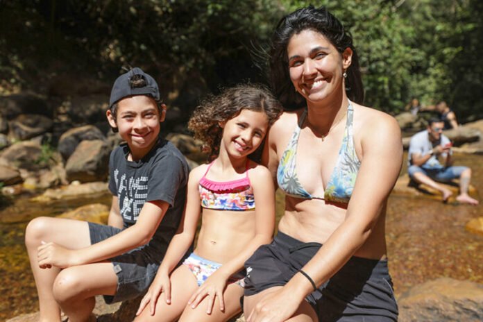 A cachoeira tem 18 m de altura e é cercada pelo bioma Cerrado. Para a nutricionista Natasha Ramos, 37, a recompensa faz a caminhada valer a pena. Moradora do Gama, ela aproveitou as férias escolares e levou os filhos Gustavo, 9, e Milena, 5, para conhecer a queda-d’água. “Vi fotos na internet e pensei: ‘porque não?’”, conta. “Estávamos precisando desse contato com a natureza. Achei a trilha tranquila, mas, vindo com crianças, precisa ter um pouco mais de atenção, principalmente na parte final”.