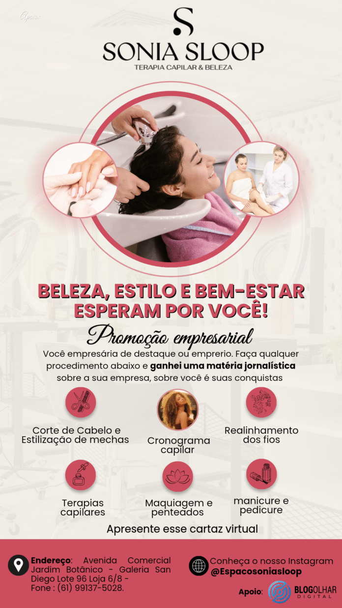 O Espaço Sonia Sloop “Terapia Capilar & Beleza” lança uma campanha inovadora que une cuidado pessoal e valorização profissional. Localizado na Avenida Comercial do Jardim Botânico, em Brasília, o salão se tornou referência em terapias capilares e estética, oferecendo muito mais do que beleza: uma verdadeira experiência de autoestima e reconhecimento.