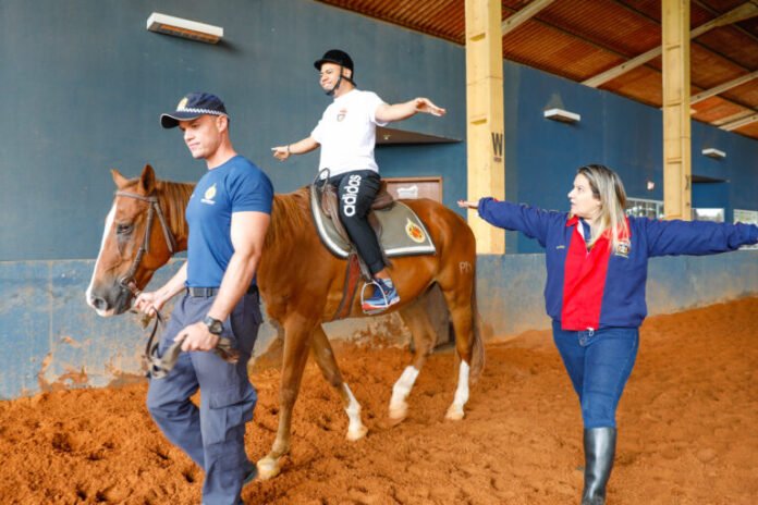 Uma avaliação do caso clínico é feita após a convocação, para que o tratamento seja iniciado. Semanalmente, o paciente faz uma sessão de 30 minutos, em que é auxiliado por professores e policiais a circular em cima do cavalo num galpão fechado, conhecido como picadeiro, e realizar atividades de desenvolvimento motor.