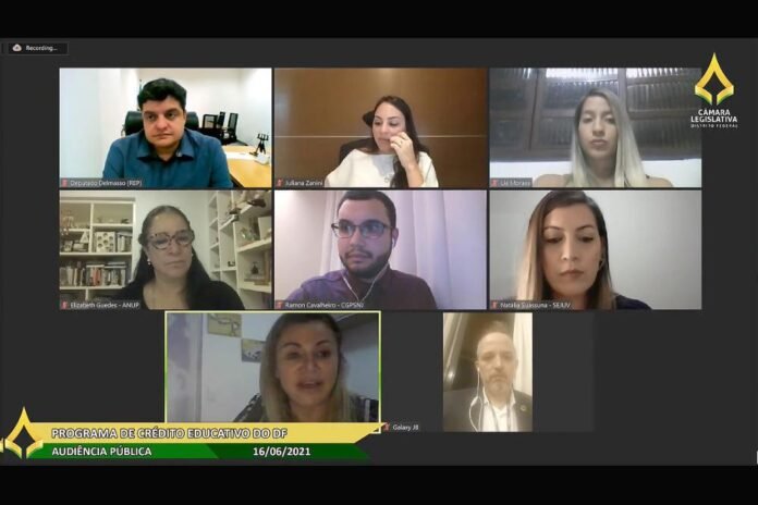 A Câmara Legislativa discutiu, em audiência pública na noite desta quarta-feira (16), o PL 151/2019, do deputado Delmasso (Republicanos), que trata sobre o pagamento de mensalidades nas universidades privadas por meio do programa Crédito Educativo integrado ao programa Nota Legal. O evento remoto foi transmitido ao vivo pela TV Web CLDF e pelo portal da Casa no Youtube.