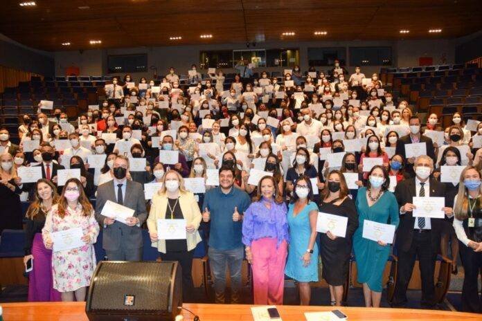 A Câmara Legislativa homenageou os profissionais do laboratório Sabin em solenidade no auditório da Casa na tarde desta segunda-feira (30), com transmissão ao vivo pela TV Câmara Distrital (canal 9.3) e YouTube. O vice-presidente da CLDF, deputado Delmasso (Republicanos), entregou cerca de três mil moções de louvor aos trabalhadores, em reconhecimento à qualidade do atendimento, especialmente durante a pandemia. O parlamentar lembrou que o Sabin foi um dos primeiros laboratórios no País a realizar a coleta de testes de Covid-19. Ele narrou os desafios impostos no período e agradeceu o comprometimento do grupo no enfrentamento à doença.