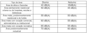 Critérios de avaliação para ambientes externos por dB (decibéis – níveis de intensidade sonora)