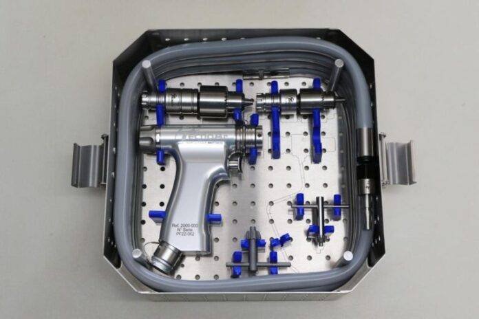 “É uma furadeira com potência maior, porque usa ar comprimido e permite tanto o processo mais delicado quanto o de maior esforço”, explica o secretário-adjunto de Gestão em Saúde, Jansen Roger Sousa Rodrigues. Os perfuradores fazem orifícios no tecido ósseo, com utilização de vários tipos de brocas, tanto para a introdução quanto para a extração de pinos e fios lisos ou com roscas.