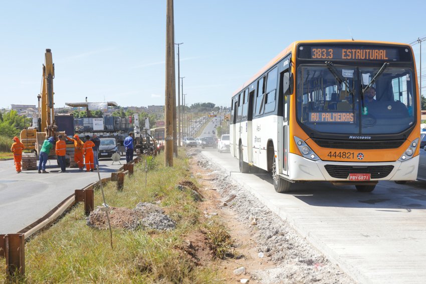 Para iniciar esta nova etapa da obra, o departamento desviou o trânsito na madrugada de hoje: quem sobe rumo a Ceilândia já usa um grande trecho da pista em concreto concluída. E os motoristas que descem rumo à região central de Brasília usam apenas a marginal da Estrutural. “Além disso, estamos criando um desvio, uma rota de saída ali na marginal, para melhorar o fluxo em direção ao Plano Piloto”, acrescenta o engenheiro civil.