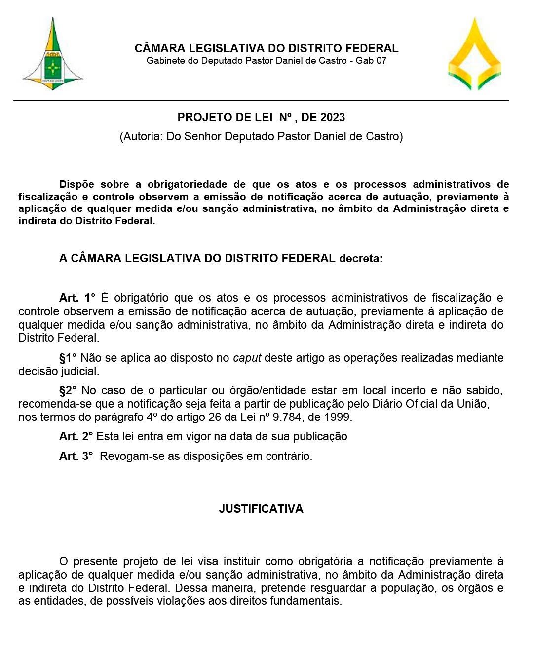 O deputado distrital Daniel de Castro, comprometido com o fortalecimento dos direitos dos cidadãos e a promoção de uma gestão pública justa e transparente, protocolou recentemente um importante Projeto de Lei (PL) na Câmara Legislativa do Distrito Federal (CLDF). A proposta visa garantir que qualquer ato de fiscalização e controle urbano, incluindo a derrubada de construções irregulares, só ocorra após a devida notificação ao interessado. Este movimento é um marco crucial para assegurar mais transparência e justiça em processos que afetam diretamente a vida de milhares de cidadãos do Distrito Federal.