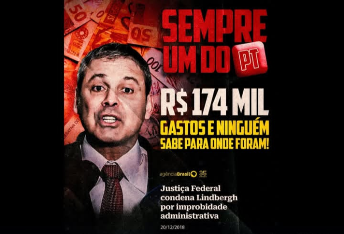 A postagem faz referência a uma decisão da Justiça Federal de 2018, amplamente divulgada à época por veículos de comunicação, relacionada a condenação por improbidade administrativa, utilizando o caso como exemplo da importância do controle, da fiscalização e da correta destinação do dinheiro público.