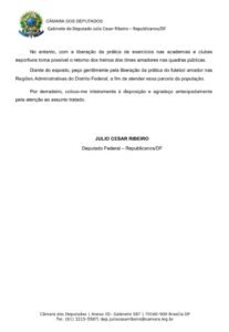 Após o pedido feito em 25/05 pelo parlamentar, o executivo local, hoje restabeleceu as competições esportivas profissionais no Distrito Federal, diante do cumprimento de protocolos e medidas de segurança gerais estabelecidas pelo Governo do Distrito Federal (GDF).