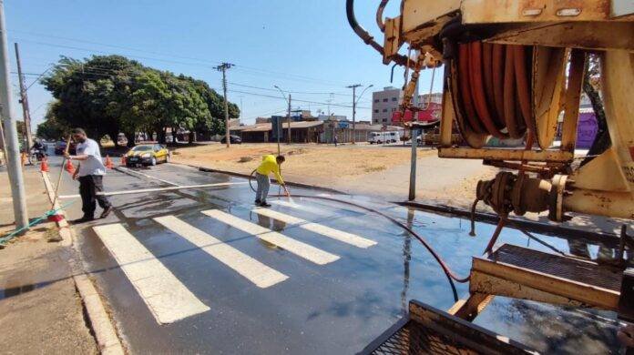 Até agora, 201 faixas já foram lavadas pelo Detran e o Programa de Lavagem de Faixas está em andamento nas vias urbanas do DF.