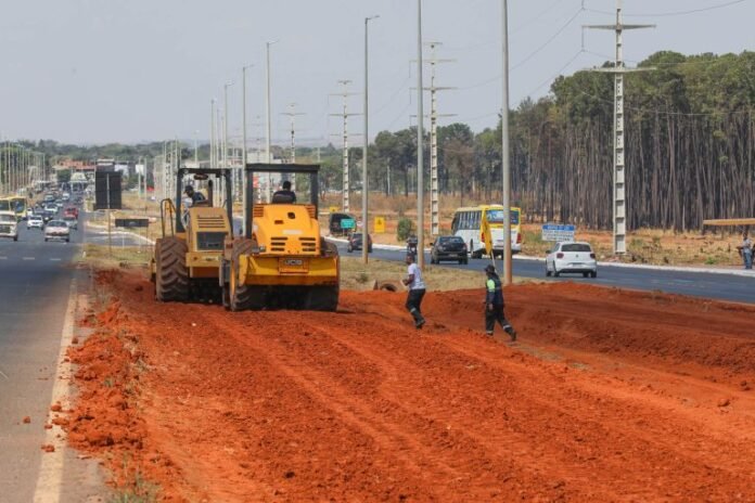 De acordo com o Departamento de Estradas de Rodagem do Distrito Federal (DER-DF), o serviço topográfico começou no último dia 23. “Neste momento, estamos executando o aterro juntamente com a terraplenagem (subleito, leito e base) para, posteriormente, imprimirmos e colocarmos a capa asfáltica”, detalha o chefe do 1º Distrito Rodoviário do DER, Kênio Márcio Avelar.