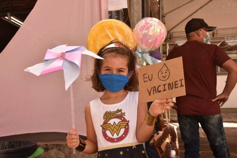 Lhays Miranda, 42 anos, e Wenderson Mota, 43 anos, levaram a “Mulher-Maravilha” para vacinar na unidade básica de saúde 1 do Cruzeiro. A pequena Helena Miranda Mota tem 5 anos e foi imunizada hoje, um dia antes de comemorar seu aniversário. Satisfeita, ela disse que achou bem rápido. Sobre a fantasia, contou que teve ajuda da mãe na escolha.