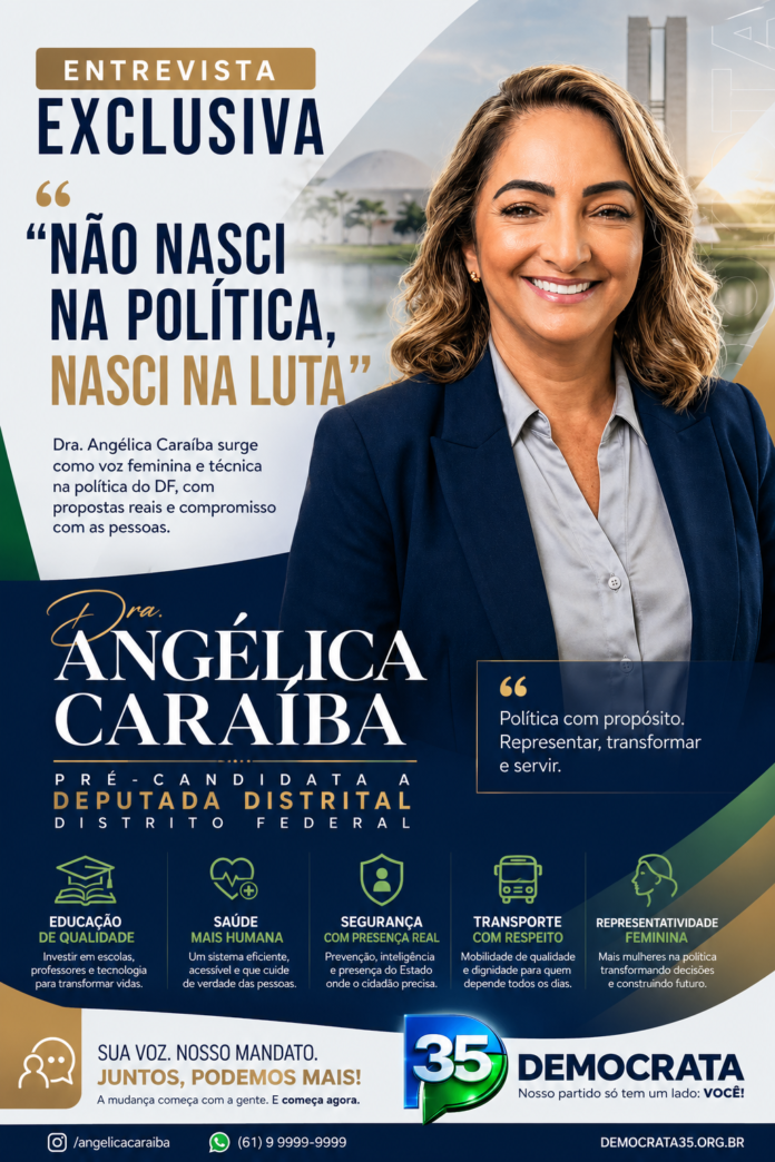 A pré-candidata Dra. Angélica Caraíba, filiada ao partido Democrata 35, se apresenta como uma liderança que nasce da vivência real da população, especialmente das mulheres que enfrentam desafios diários em busca de dignidade, respeito e oportunidades.