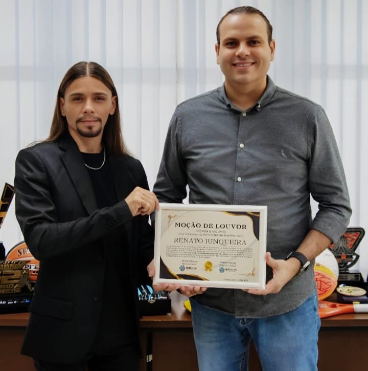 Pelo seu trabalho à frente da Secretaria de Esporte e Lazer, Renato Junqueira foi agraciado com uma Moção de Honra e Mérito, entregue pelo jornalista Eduardo Magregor, do portal de notícias Blog Olhar Digital. A honraria reconhece a dedicação, o compromisso e os resultados alcançados na construção de um DF mais esportivo, inclusivo e cheio de oportunidades.