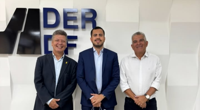 O presidente do Departamento de Estradas de Rodagem do Distrito Federal (DER-DF), Fauzi Nacfur Júnior, recebeu em seu gabinete o gerente de governo do Banco do Brasil, Andrey Sousa, em uma importante reunião que teve como objetivo fortalecer a parceria entre as instituições e garantir o financiamento das obras de infraestrutura viária no DF. Também esteve presente o coordenador de planejamento e captação de recursos do DER, Maurício Marques.