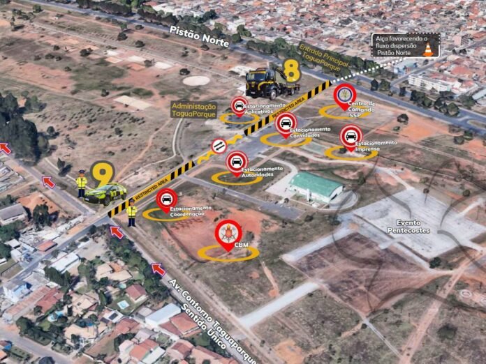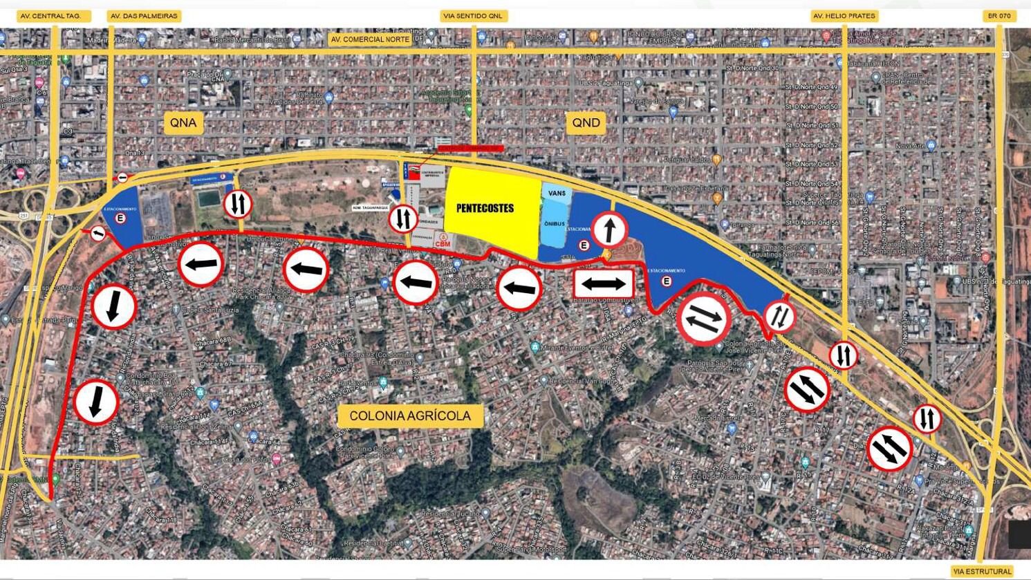 Na região do Taguaparque e Vicente Pires, durante a saída do evento, o fluxo de veículos na avenida contorno do parque, iniciando próximo ao Ginásio de Esportes, estará em sentido único nas duas faixas de rolamento. A esquerda do condutor, a via estará em sentido único para a Estrutural, já a direita do condutor, o fluxo seguirá no sentido EPTG.