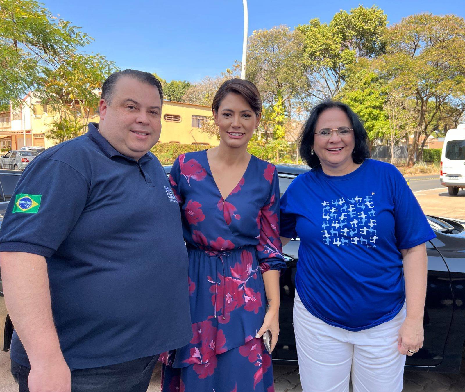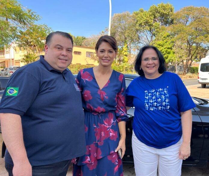 Marcando presença na convenção distrital realizada pelo republicanos a Primeira Dama Michelle Bolsonaro vem abraçando os seus preferites (favoritos), candidatos.