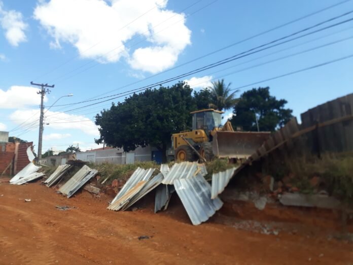 No local, equipes da pasta desconstituíram 450 metros de muro, 150 metros de uma cerca metálica, um galpão e uma pequena guarita, que era utilizada por vigias.