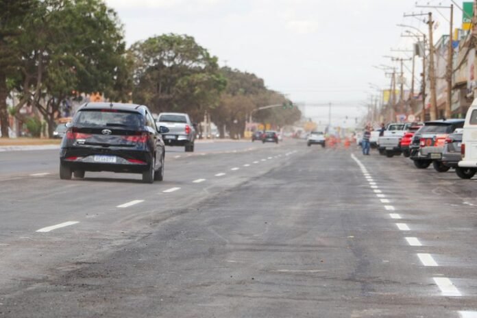 Governo assumiu trabalhos no começo do mês e, em apenas 18 dias, pavimentou dois trechos da principal via de ligação entre Ceilândia e Taguatinga; equipes trabalham na recuperação de calçadas, meios-fios e canteiros centrais.