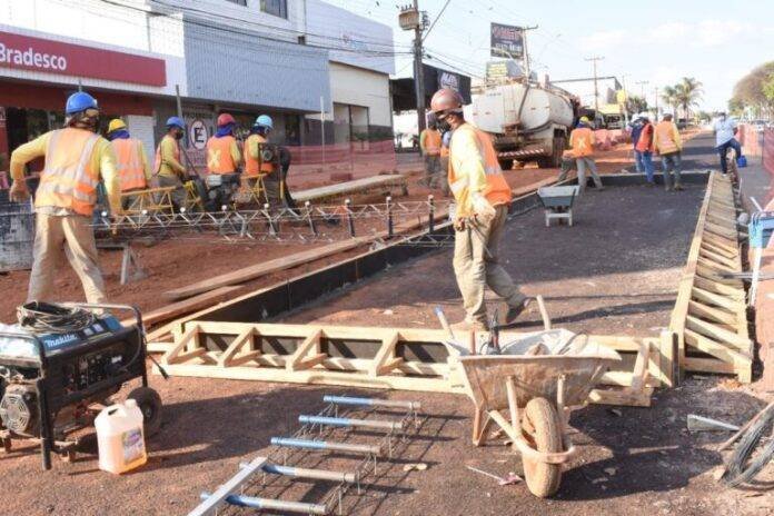 Nos próximos dias está previsto o início da pavimentação das faixas para ônibus.
