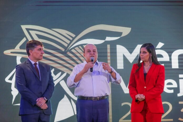 O governador do Distrito Federal, Ibaneis Rocha, participou, na noite desta quinta-feira (19), da solenidade de entrega do Prêmio Mérito Varejista 2023, no Dúnia City Hall, no Lago Sul. A honraria é concedida pelo Sindicato do Comércio Varejista (Sindivarejista) a empresários, autoridades e personalidades que colaboraram para o desenvolvimento da classe econômica na capital federal. Em sua segunda edição, foram entregues onze comendas.