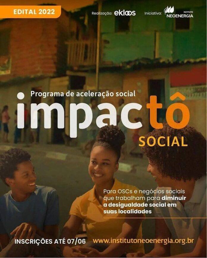O Instituto Neoenergia, em parceria com o Instituto Ekloos, está com inscrições abertas em Brasília para o Programa de Aceleração Impactô Social, que visa apoiar a redução da desigualdade social no Brasil. Nesta quarta edição, o programa será dirigido às organizações e negócios sociais que atuam com crianças, adolescentes e jovens nas áreas de capacitação profissional, inclusão social de pessoas com deficiências e doenças graves e educação (como temática principal ou transversal). Ao fim do programa, as organizações participarão de uma banca de investimento, podendo receber um incentivo adicional de até R$ 100 mil.