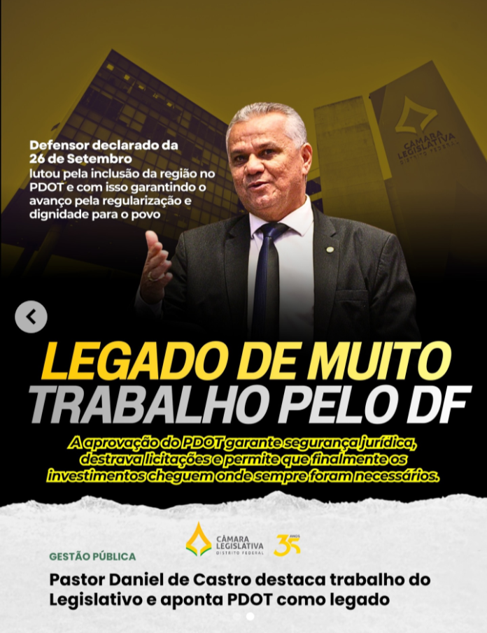 A inclusão da 26 de Setembro no PDOT representa um marco para o DF e evidencia o papel do Legislativo na construção de soluções estruturais. Sob a liderança de Daniel de Castro, o tema da regularização fundiária ganha protagonismo e se transforma em política pública efetiva.
