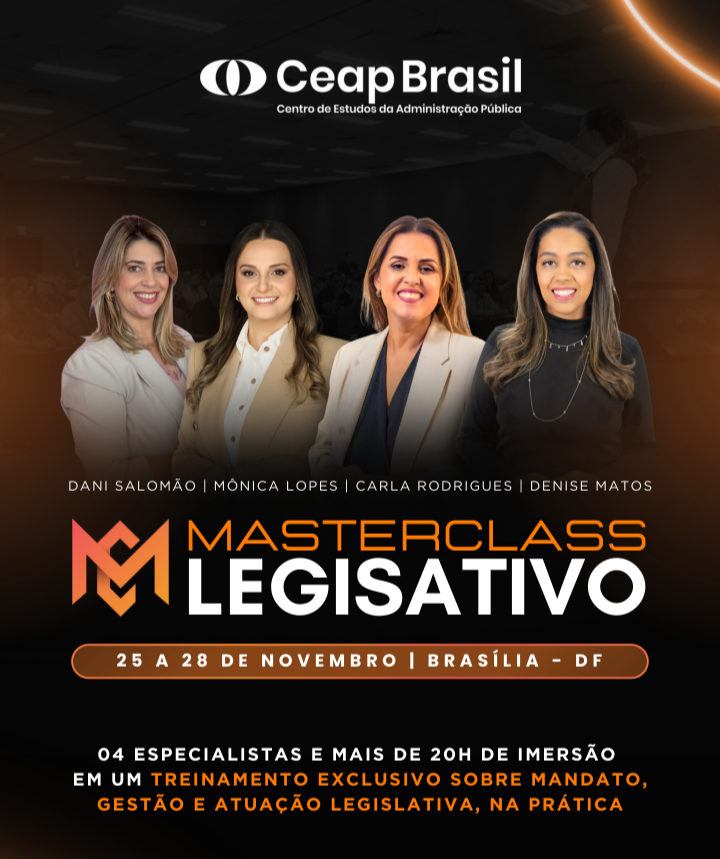 Entre 25 e 28 de novembro, Brasília receberá o LegisAtivo, um evento único que reunirá quatro especialistas renomadas em mais de 20 horas de imersão prática voltadas a vereadores, assessores, procuradores, contadores e servidores públicos. Realizado no Esplanada Brasília Hotel – SHS Quadra 3 Bloco E, Asa Sul, o LegisAtivo promete transformar a forma como mandatos e gestão política são conduzidos, trazendo aprendizado prático, estratégico e replicável.