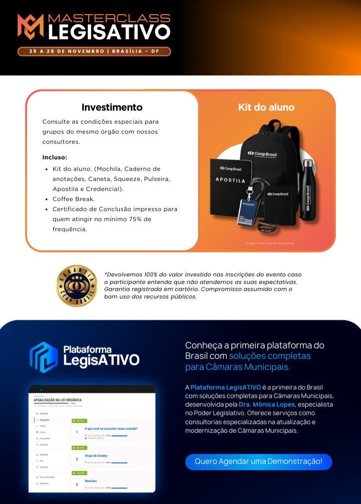 O LegisAtivo não é apenas um curso: é uma experiência transformadora que prepara os participantes para atuar com eficiência, transparência e resultados concretos na política municipal.