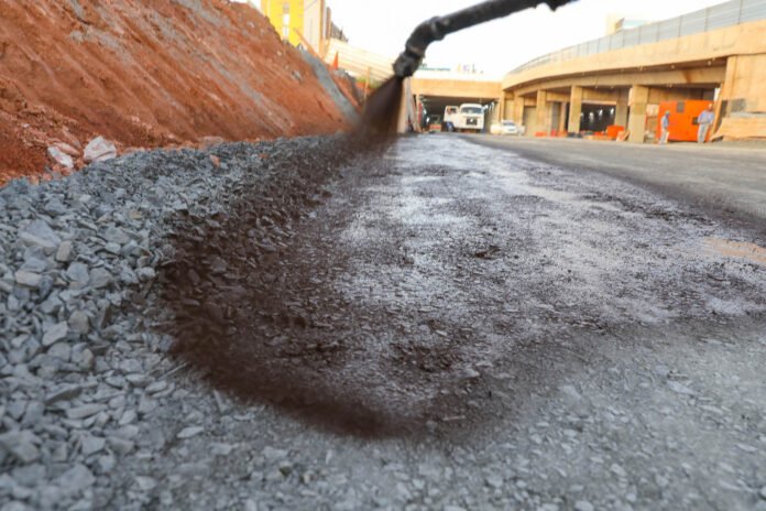 O engenheiro civil José Alfredo Aguiar conta que o asfaltamento das pistas vai consumir cerca de 1.100 toneladas de concreto betuminoso usinado a quente (CBUQ). “As seis faixas de rolamento receberão três camadas de asfalto com 5 cm de espessura, espalhado e compactado a uma temperatura de 145º”, detalha. Entre uma aplicação e outra, um banho de ligação com emulsão asfáltica vai garantir uma aderência de qualidade.