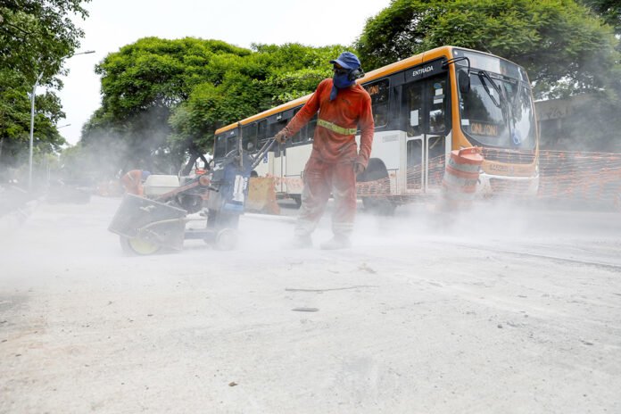 A faixa exclusiva está sendo toda construída em pavimento rígido de concreto, material indicado para o trânsito de veículos pesados por ser mais resistente, duradouro e de fácil manutenção.