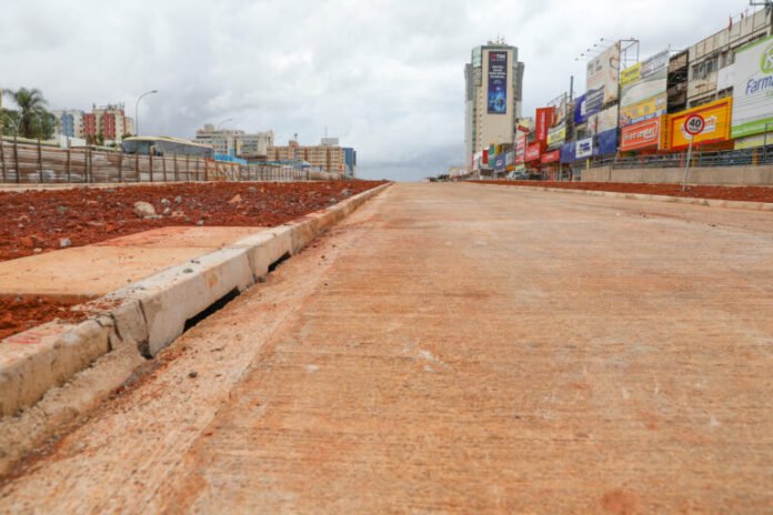 “Já temos 2.100 m executados, a maior parte dessa metragem concentrada na chamada fase 1 do boulevard”, afirma o engenheiro civil Samuel Teles. “Esse trecho, que vai da Estrada Parque Taguatinga até a Avenida Comercial, foi o primeiro a ser pavimentado.”