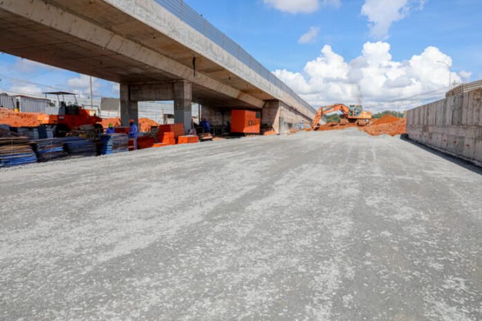 Os trabalhos nas duas pistas que conectam o Túnel de Taguatinga à Avenida Elmo Serejo alcançaram mais uma etapa da construção. As vias de 130 m de extensão passam pela fase da imprimação, quando é feito o banho de piche. O serviço antecede a aplicação do pavimento.