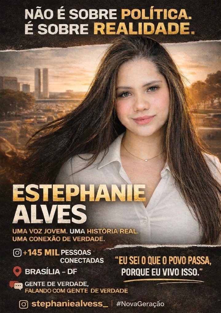 De forma natural, sem roteiro político tradicional e com uma comunicação que nasce do cotidiano, o nome de Estephanie Alves Gama de Sousa começa a circular com mais intensidade entre os jovens e moradores do Distrito Federal.
