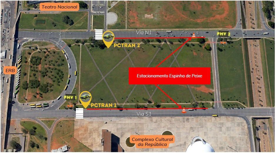 O Departamento de Trânsito do Distrito Federal – Detran-DF, fará o controle de travessia de pedestres tanto na via S1 quanto na via N1, todos os dias, a partir das 17h. Ainda nestas duas vias, será permitido estacionar ao longo do canteiro central, no lado esquerdo, de acordo com as orientações dos painéis luminosos e dos agentes de trânsito que estarão no local durante a realização do evento.