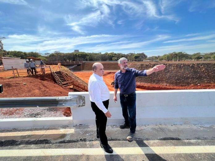 Governador Ibaneis Rocha visitou a obra nesta sexta-feira (12); primeiro viaduto, que liga o Setor Policial ao Eixo W, foi entregue em 1ºde julho.