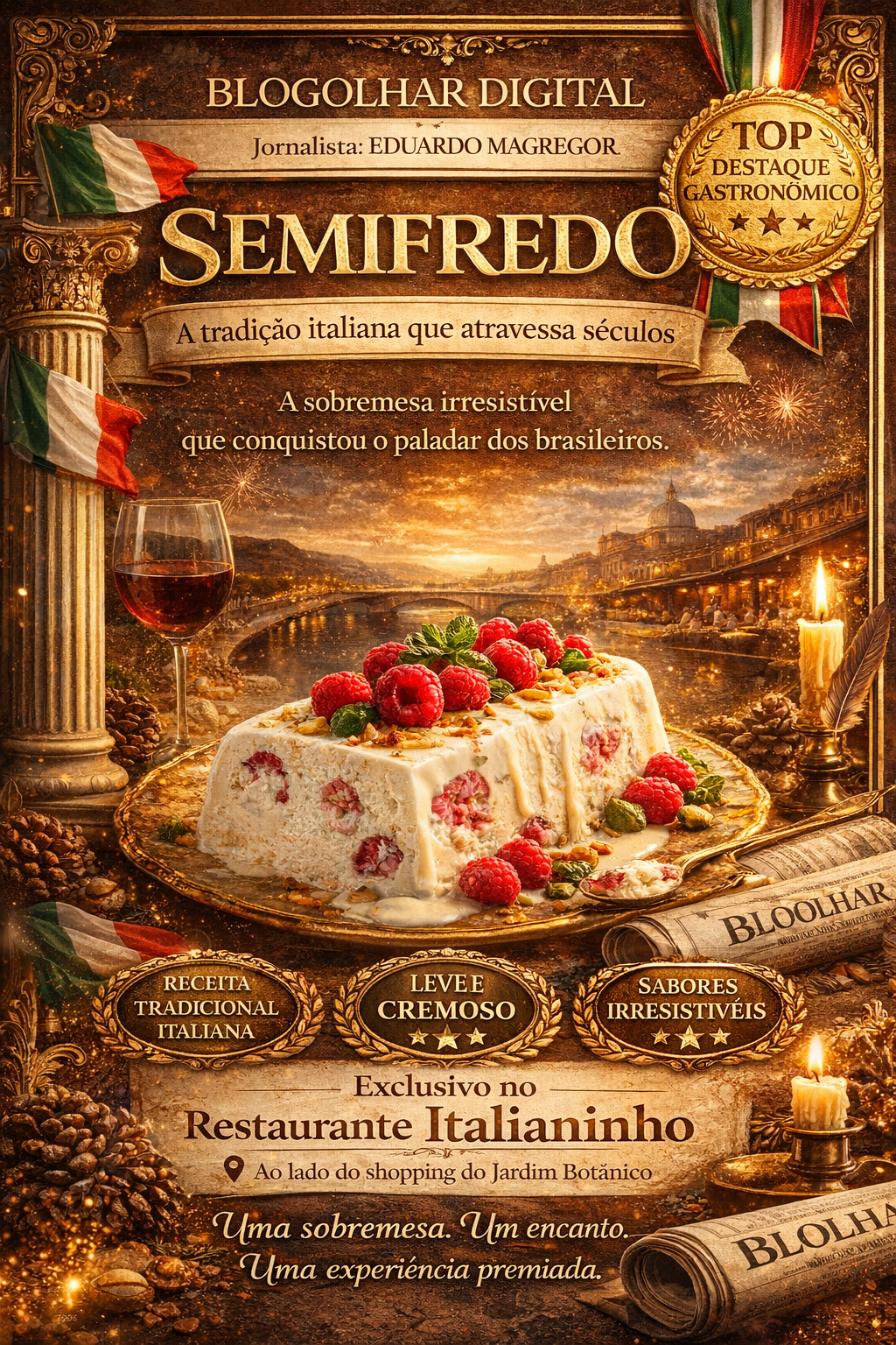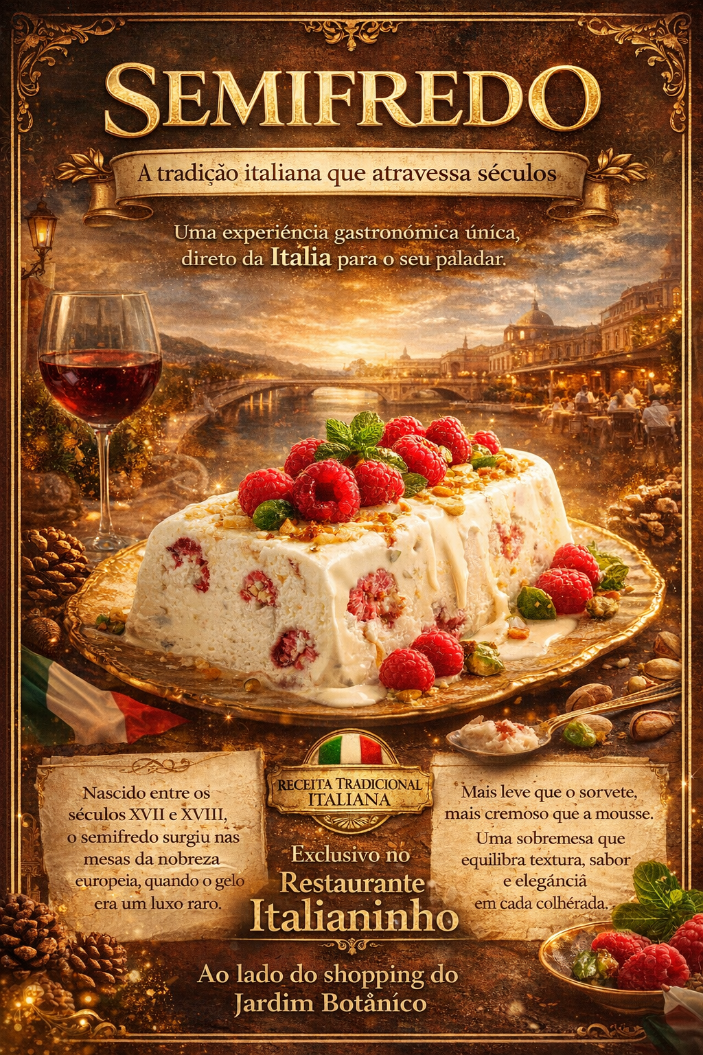 Mais do que uma simples sobremesa, o semifredo representa cultura, história e sofisticação. No Italianinho, ele se transforma em uma experiência completa, capaz de transportar o cliente diretamente às origens da gastronomia italiana. Uma verdadeira viagem no tempo servida em forma de sobremesa.