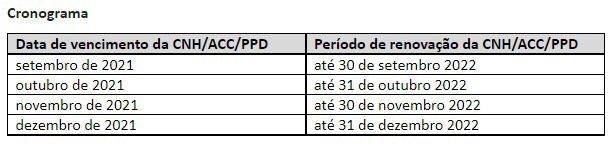 Cronograma foi definido pela Senatran, que estendeu por um ano o prazo para a regularização do documento em decorrência da pandemia de Covid-19.