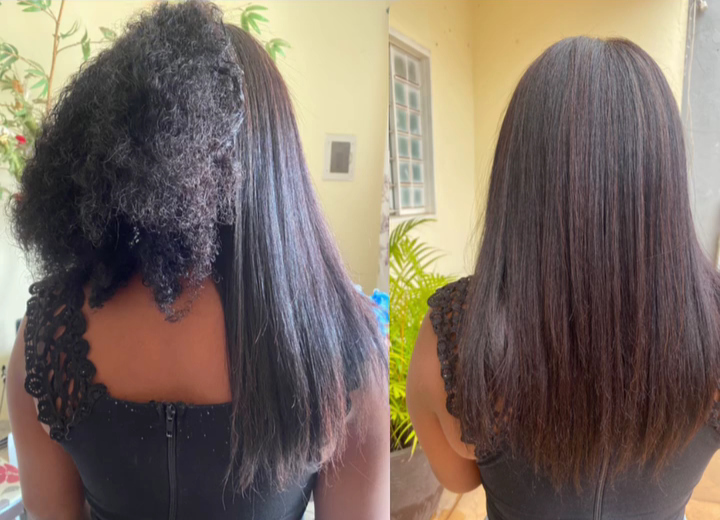 O tratamento promove alinhamento dos fios, controle do frizz, brilho intenso e leveza, mantendo o movimento natural do cabelo.