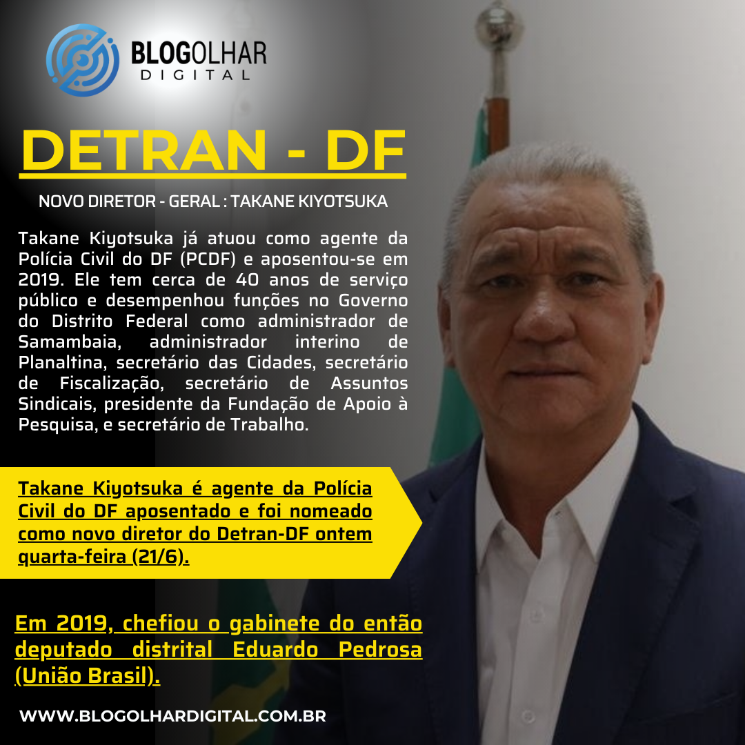 Takane Kiyotsuka é agente da Polícia Civil do DF aposentado e foi nomeado como novo diretor do Detran-DF ontem quarta-feira (21/6).