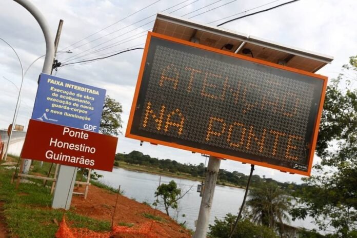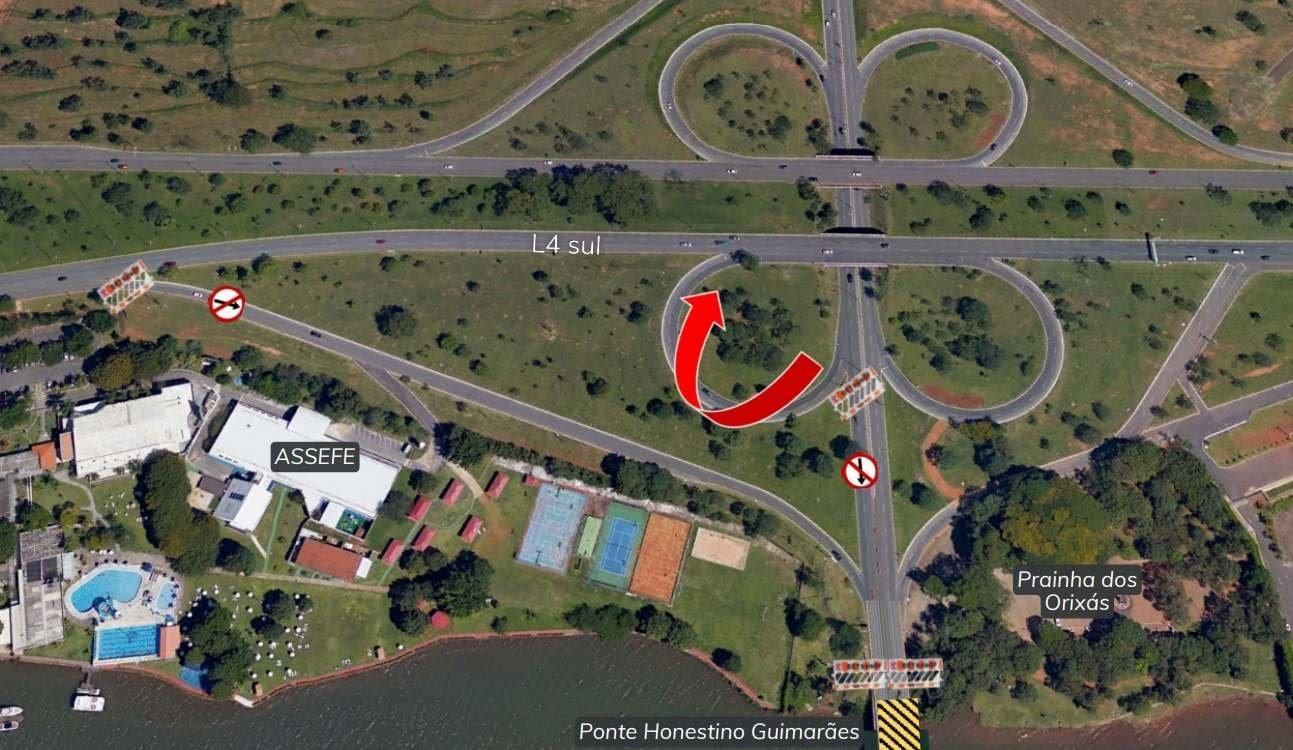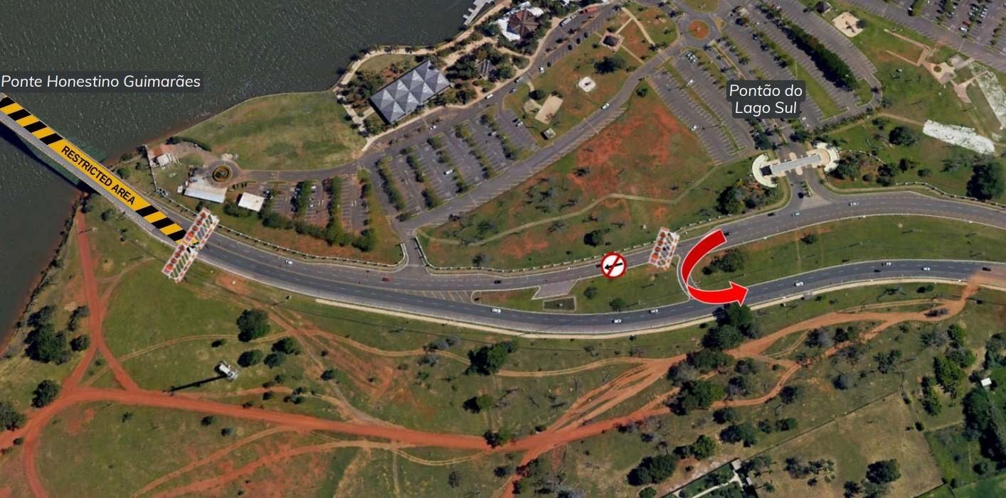 Painéis de mensagens e sinalização indicando os fechamentos serão instalados antes dos acessos à ponte Honestino Guimarães. O trânsito será desviado na altura da Via L4 Sul, próximo ao viaduto, e no Lago Sul, na altura do retorno em frente ao Pontão do Lago Sul.