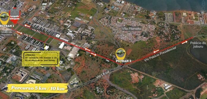 A partir das 6h, os agentes do Detran-DF farão interdições na via SHTN Trecho 1, entre o Royal Tulip e o posto de combustíveis, para implantar o compartilhamento das faixas entre corredores e veículos. Duas faixas serão destinadas aos atletas. A previsão é que as intervenções no trânsito ocorram até 10h.