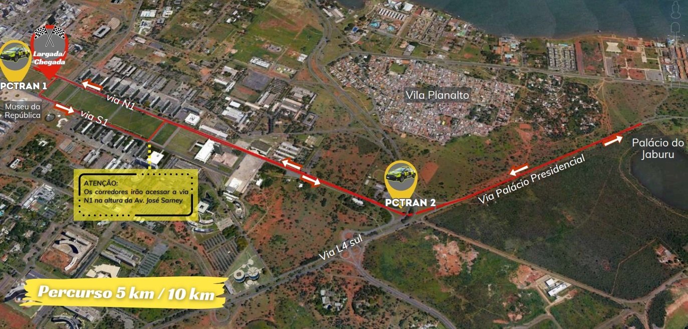 No sábado (27/9), será realizada a Corrida SBT Sunset Run, que contará com percursos de 5 km e 10 km, pelas vias: S1, Palácio Presidencial e N1. A largada e a chegada dos participantes ocorrerão na Esplanada dos Ministérios, na do Museu da República.