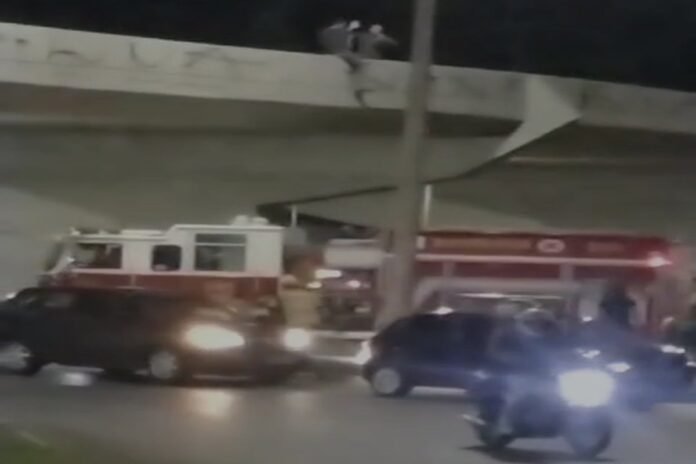 Vídeo registrou o exato momento em que policial militar do DF salva a vida de um homem que ameaçava se jogar de um viaduto no DF.