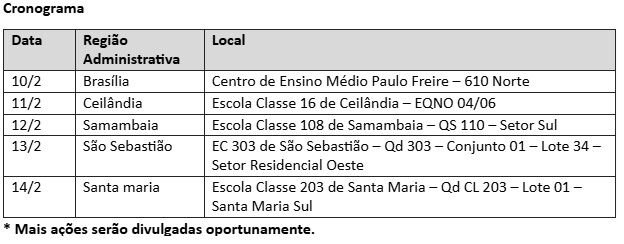E, dentro das escolas, serão realizadas palestras e apresentações teatrais para estudantes e professores.
