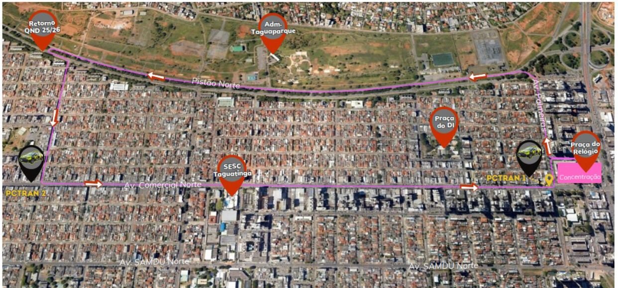 Na tarde de domingo (15), das 13h às 22h, o trânsito em Taguatinga será impactado pela realização da 16ª Parada do Orgulho LGBTQIAP+. A concentração dos participantes será na Praça do Relógio, de onde sairá o trio elétrico, por volta das 17h, passando pela Avenida das Palmeiras em direção ao Pistão Norte, retornando na altura da QND 25/26, em direção à Avenida Comercial, de onde seguem de volta à Praça do Relógio. Em razão do evento, as equipes de policiamento e fiscalização de trânsito darão início à colocação do material de sinalização e fechamento das vias de acesso à Avenida Comercial e seus cruzamentos desde as 23h59 de sábado (14). Os agentes farão controle do tráfego de veículos na saída e no retorno do trio elétrico.